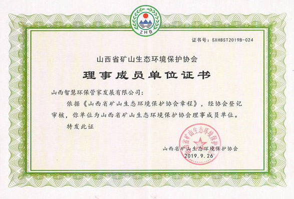 山西省礦山生態環境保護協會理事成員單位證書